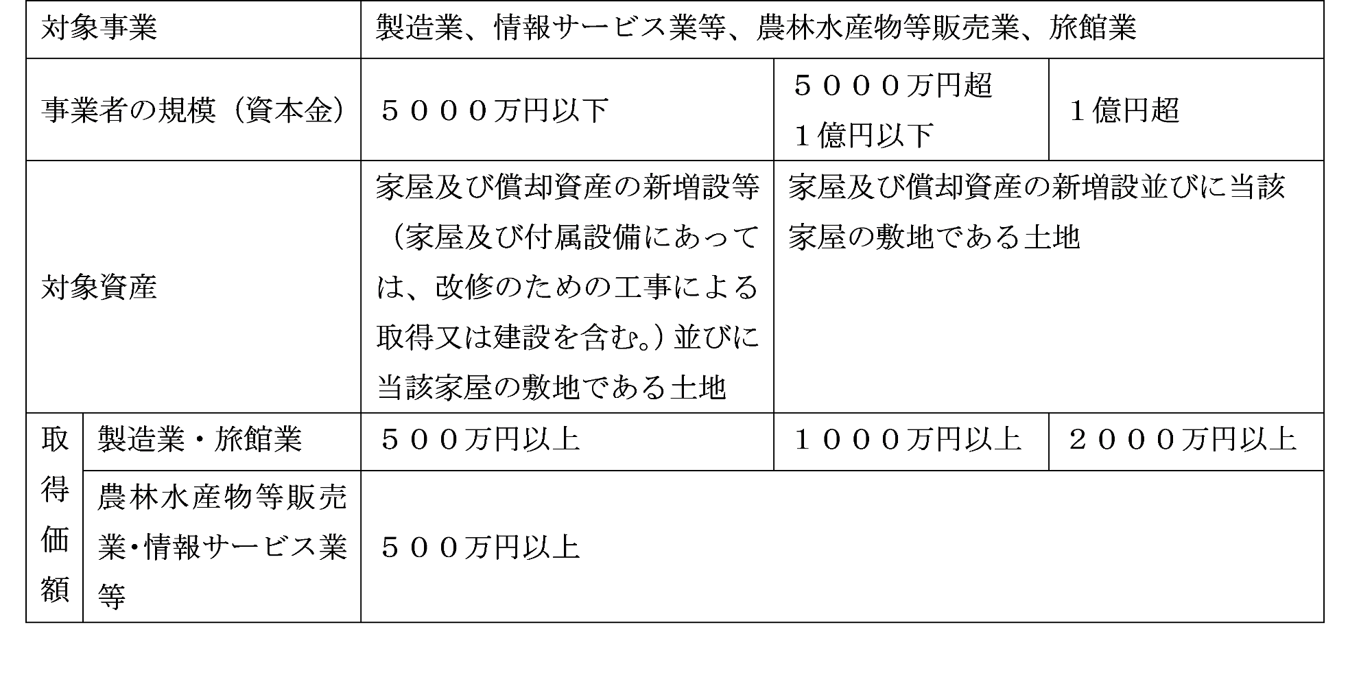 個人または法人が、機械・装置、建物・その付属設備及び構築物の取得等をして対象事業の用に供した場合は、5年間の割増償却ができます。